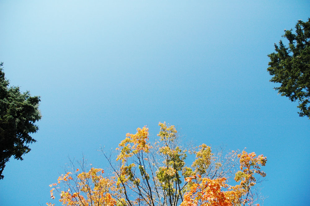 What happens when you consider the sky as a landscape? The focus shifts to a negative space of expansive nothingness. Location becomes ambiguous and universal. How can structures, natural and unnatural, frame that negative space? Framing and color give dimension to the seemingly flat surface. This was my approach to landscape when I was stuck at Bowdoin for the weekend, trying to view my surroundings in a different and interesting way. Success? Yes. In many shades of blue.
