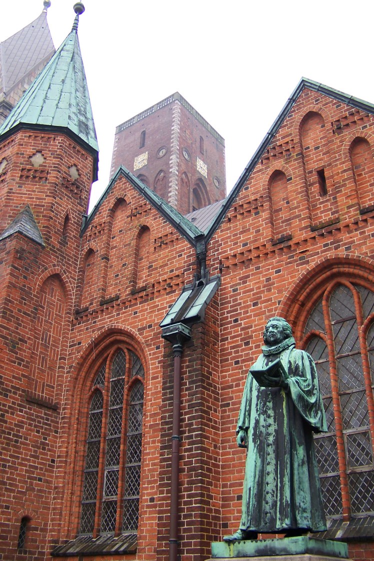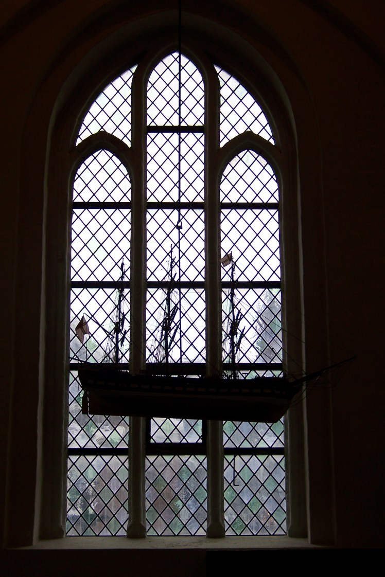 Inside the Cathedral was a mix of the old and some gaudy new. But it must have been grand for the Ribe residents. One of the pillars is marked about 7ft high when a great storm in 1634 flooded the cathedral. A model of the ship “Maria” by B. Cl. Jensen of Ribe hangs in front of one of the windows.