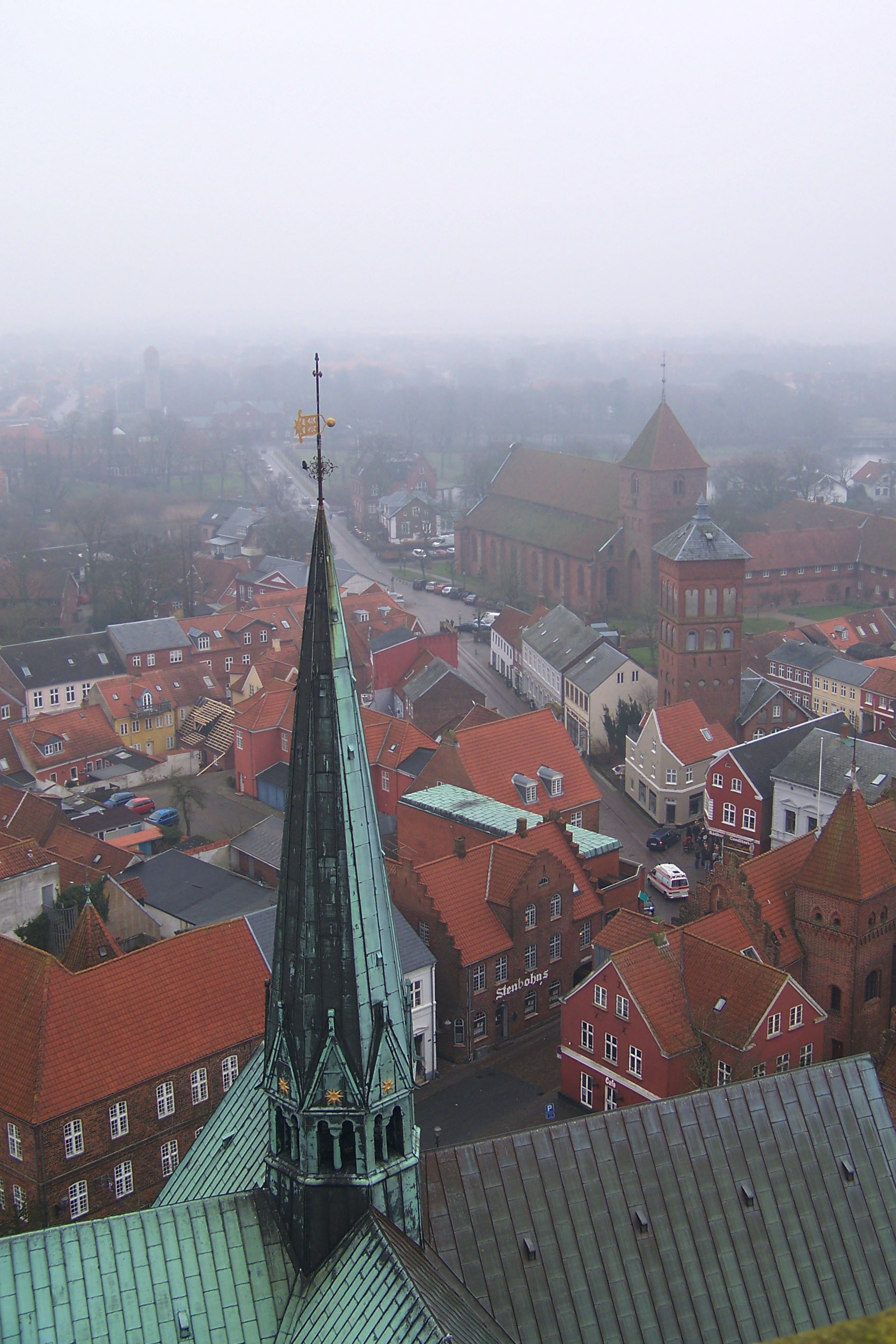 The Ribe Cathedral! We climbed 200 or so stairs to the top for an incredible view of the city, even through the fog.