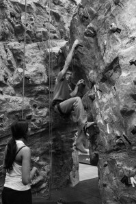 Since I am always drawn to empty spaces, small details, vibrant/bold colors, and humor, I tried to photograph people in obvious places and in black and white. Taking portraits was initially challenging but interesting as I directly engaged with the object I was photographing. I also tried to broaden my gaze and focus on the entire space before me instead of zeroing in on specific details. Here, my subjects reside within the frame while interacting with the space and forms around them. I made sure to still focus on texture and contrast, but doing so in a more general way that is more obvious to the viewer.