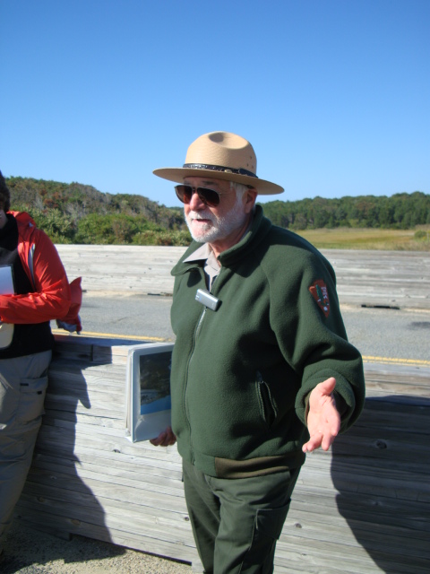 This morning I went on a ranger led tour of the Carns Site, an archaeological site discovered at Nauset Beach in 1990. The artifacts recovered date back to a permanent native residence in the Early Woodland to Middle Woodland Periods about 2,100 to 1,100 years ago. These artifacts were mostly broken projectile points, pots, and shell midden, a.k.a. waste thrown away by ancestors of the Wampanoag. For more than a year, archaeologists excavated in 5 stages and removed thousands of artifacts that are now catalogued in the museum at the National Seashore.