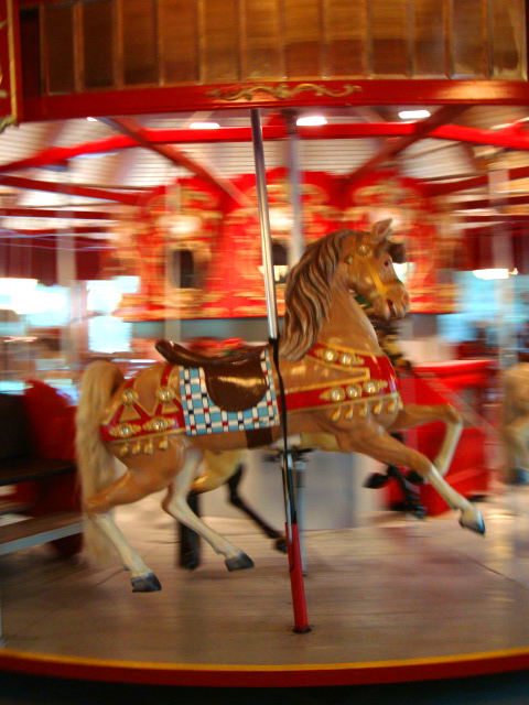 Next, I sauntered through the lovely grounds at Heritage with the specific purpose of riding the carousel. This 103 year old working carousel provides joy to both children and adults as I found myself enjoying a surprisingly brisk ride with several youngsters. The horses were beautiful and sleek, but think I liked single goat on the carousel the best.