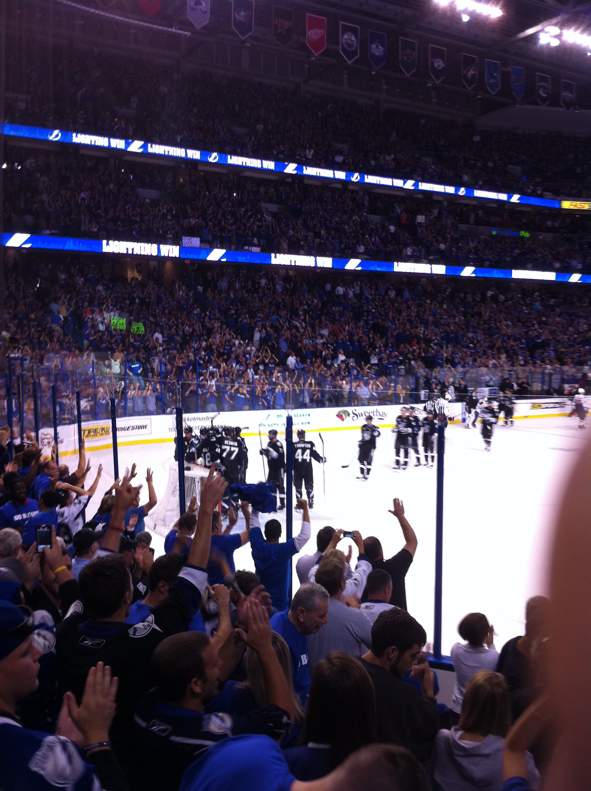 I was lucky enough to attend Game 3 at the St. Pete Time Forum. The place was packed and buzzing with excitement. It is great to see Tampa Bay transform into Hockey Bay once again. Really, is there a better sport than hockey? Ok maybe I’m biased by my Canadian roots but hockey is seriously fun.