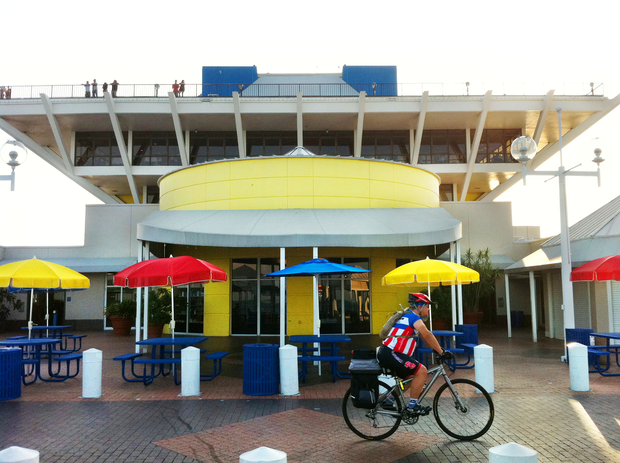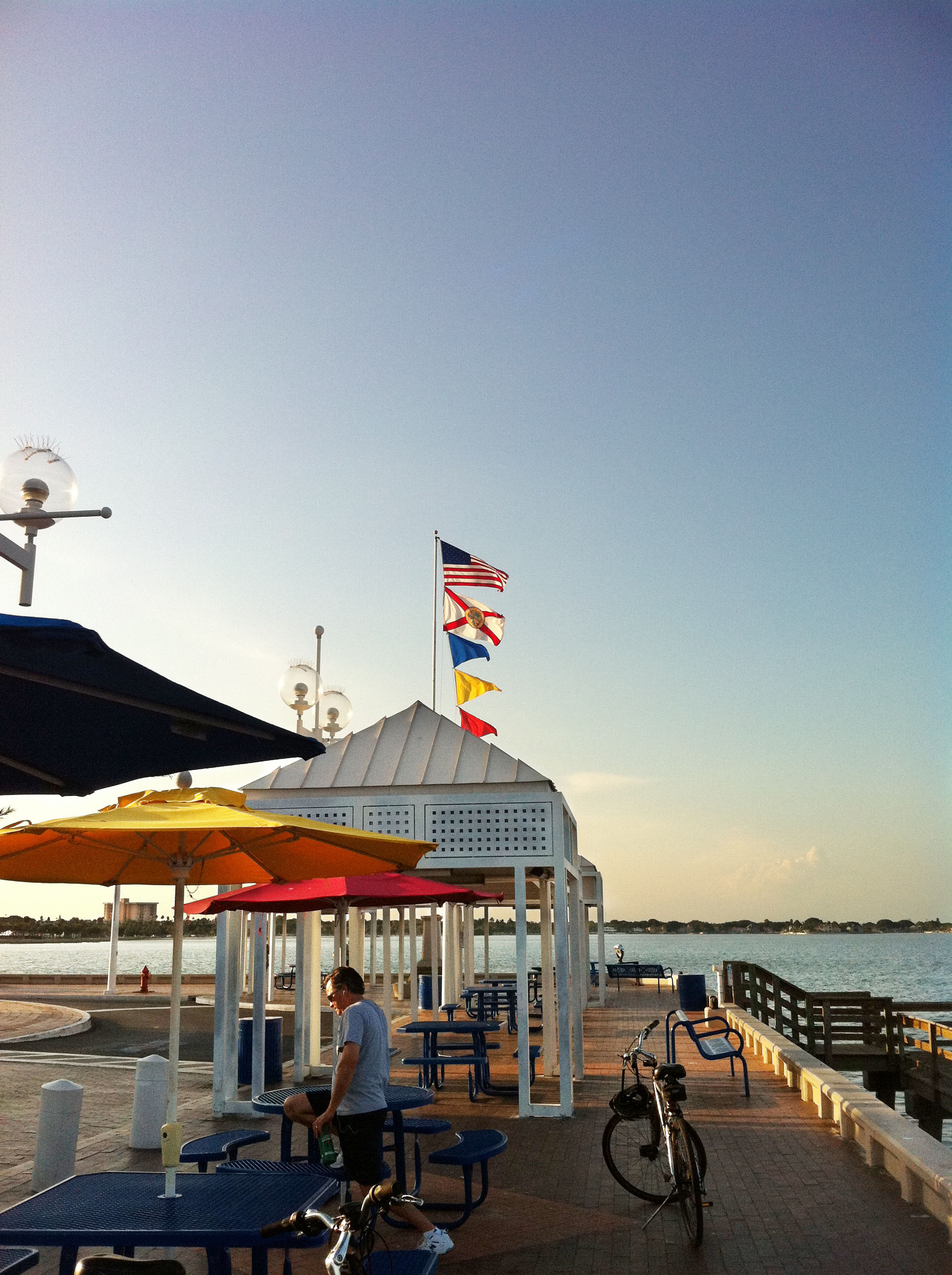 After most workdays my Dad and I take our bikes downtown to the Pier before heading to the gym to lift some weights. Yes we are hardcore. Now that it’s summer, it is still light out till about 8:30pm and we can enjoy evenings that lack the midday (and afternoon) heat. I am anxious to see how much hotter it can get. When I’m riding my bike hard, even at 7pm, sweat is literally pouring down my back.