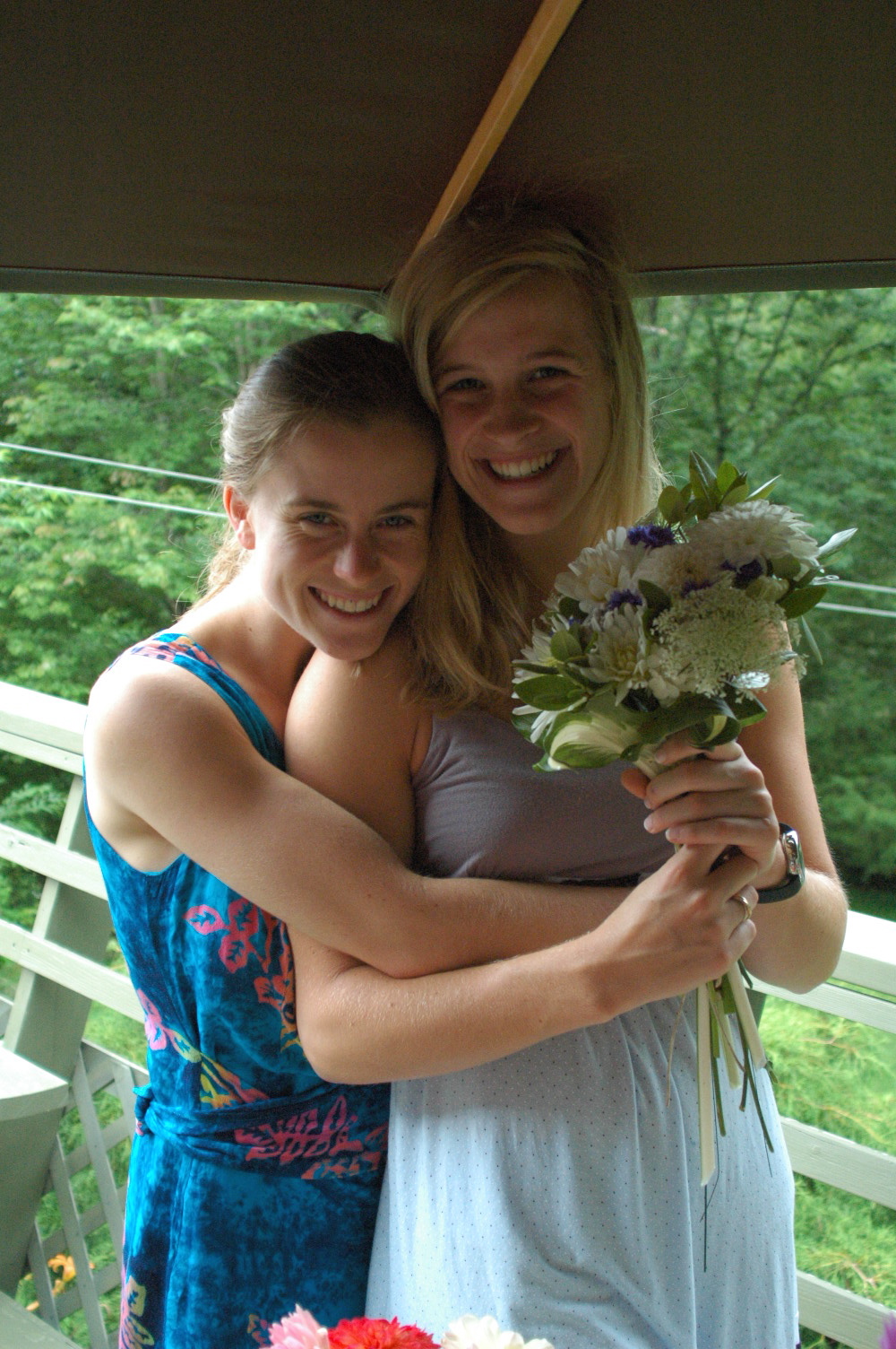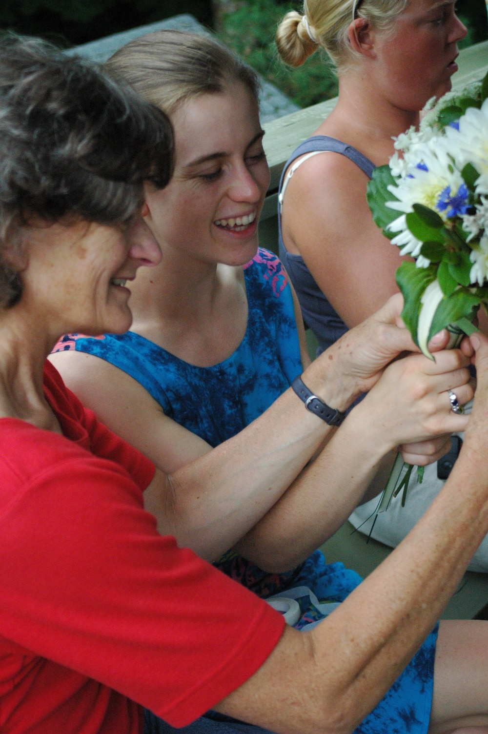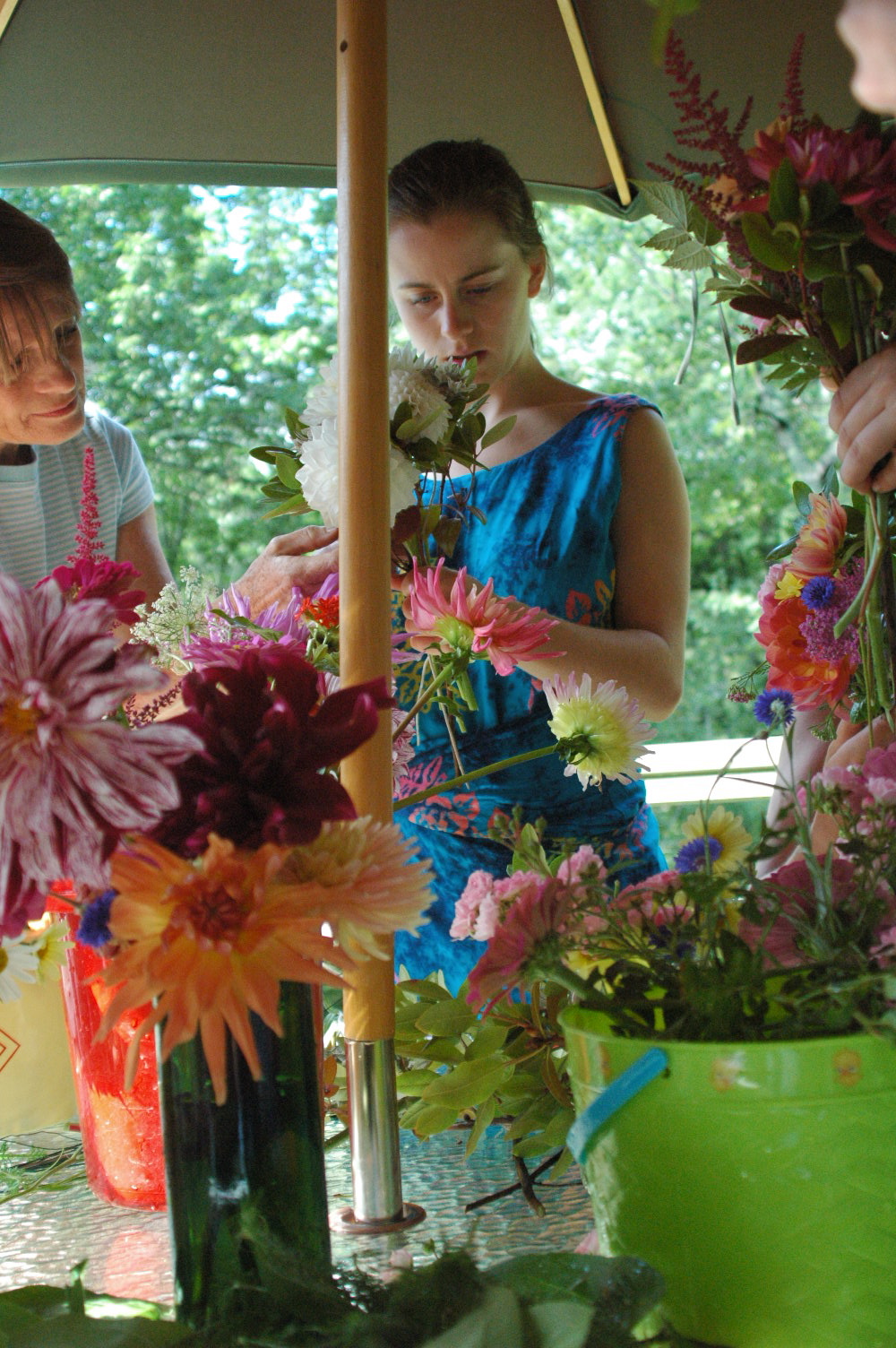 After a wonderful Rehearsal dinner Friday night, Caitlin and I ate some delicious breakfast at Whitehall Inn and headed over to the bride’s house to help make the bridal bouquets. The flowers came from her mother’s garden and they were absolutely beautiful. The girls did a great job of assorting the flowers into beautiful bouquets, although it was hard and took a long time!