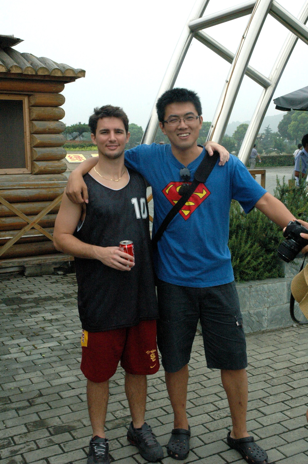 Peter and Wade. As you will see in the next picture of me with Wade’s girlfriend, it is very popular in China for people who are dating to wear matching shirts. Cool, only if they are superman shirts. Maybe.