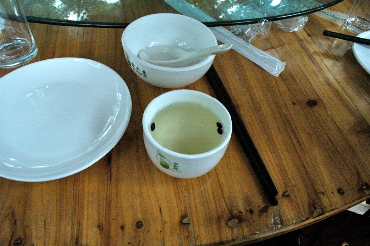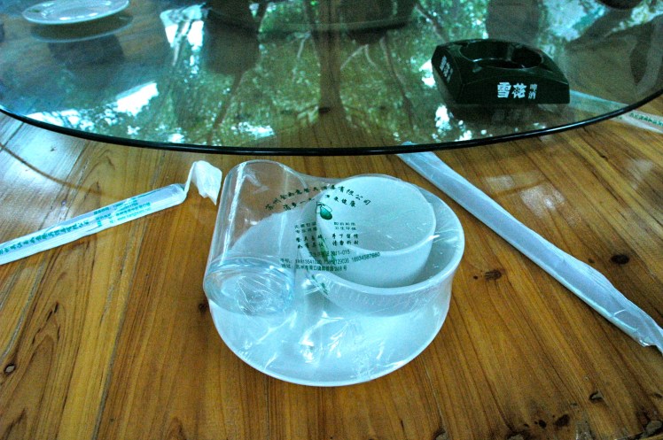 So we sit on the bus that quickly takes us out of Shanghai and through the outer sections of the city. There really is no end to the city. There are still apartment buildings, more buildings, more highway, and more people. It is just less crowded. Occasionally we see people tending to the fields, terraced slabs of forced growth plucked and groomed by able Chinese workers in 100 degree heat. I am grateful for sufficient bus air-conditioning and Chinese snacks passed and shared by all in their pretty packaging and processed goodness.