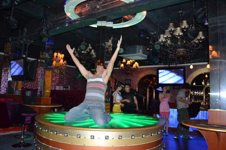 But sleep is not on our agenda quite yet. Most of our group ventures to the streets of Suzhou in search of a good bar and good fun. We walk to a street lined with bars and clubs and become extremely indecisive. We finally enter a bar and sit down in relief. However, a Chinese guy says that this place is Japanese and he doesn’t understand anything. Not like the white people with you don’t understand anything anyways. But we move on and force the group into a big karaoke bar which happens to also be Japanese. Peter, who speaks Chinese, senses the discomfort of the Chinese guys and girls and decides to do some karaoke to lighten the mood. Lady Gaga to be exact. He also begins to dance. Eventually we begin a conga line and get about 6 of us on the stage. Despite potential awkardness, a great success!