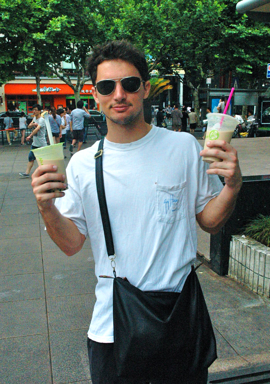 Day 4: After a late night at the bars where the most memorable moment was beating Peter at foosball (win), I am so happy to sleep in. And sleep in I do. Until about 11am. Glorious! Today is Sunday and Peter’s roommate Brian has planned activities for us in afternoon. So at about 1pm (I happen to always fashionably late), Peter and I walk to the subway and head downtown. For my first Shanghai subway experience, nothing very interesting happens but it is still very exciting. I am beginning to grasp the sheer amount of people in this country. There are ALOT of people. We finally make it downtown and wait for Brian at a park nearby. While waiting we get BOBA TEA. And suddenly, I am in love. This stuff is better than a latte. I know I know, don’t punch me. But seriously, boba tea is delicious and everything I could ever want from a cold beverage.