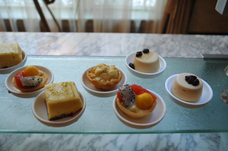 After walking for about half an hour we stop at the famous Peace Hotel right off the Bund. The Peace Hotel was built in 1929 and is considered the most famous hotel in China. As we pass through the heavy doors, the noise of the street is immediately hushed as the grandeur of the building reveals itself. The architecture is stunning and a beautiful to behold. We walk to the cafe where afternoon tea is being served to make reservations for the Jazz band that plays on the weekend. I take pictures of the adorable little cakes and wish we were staying for tea.