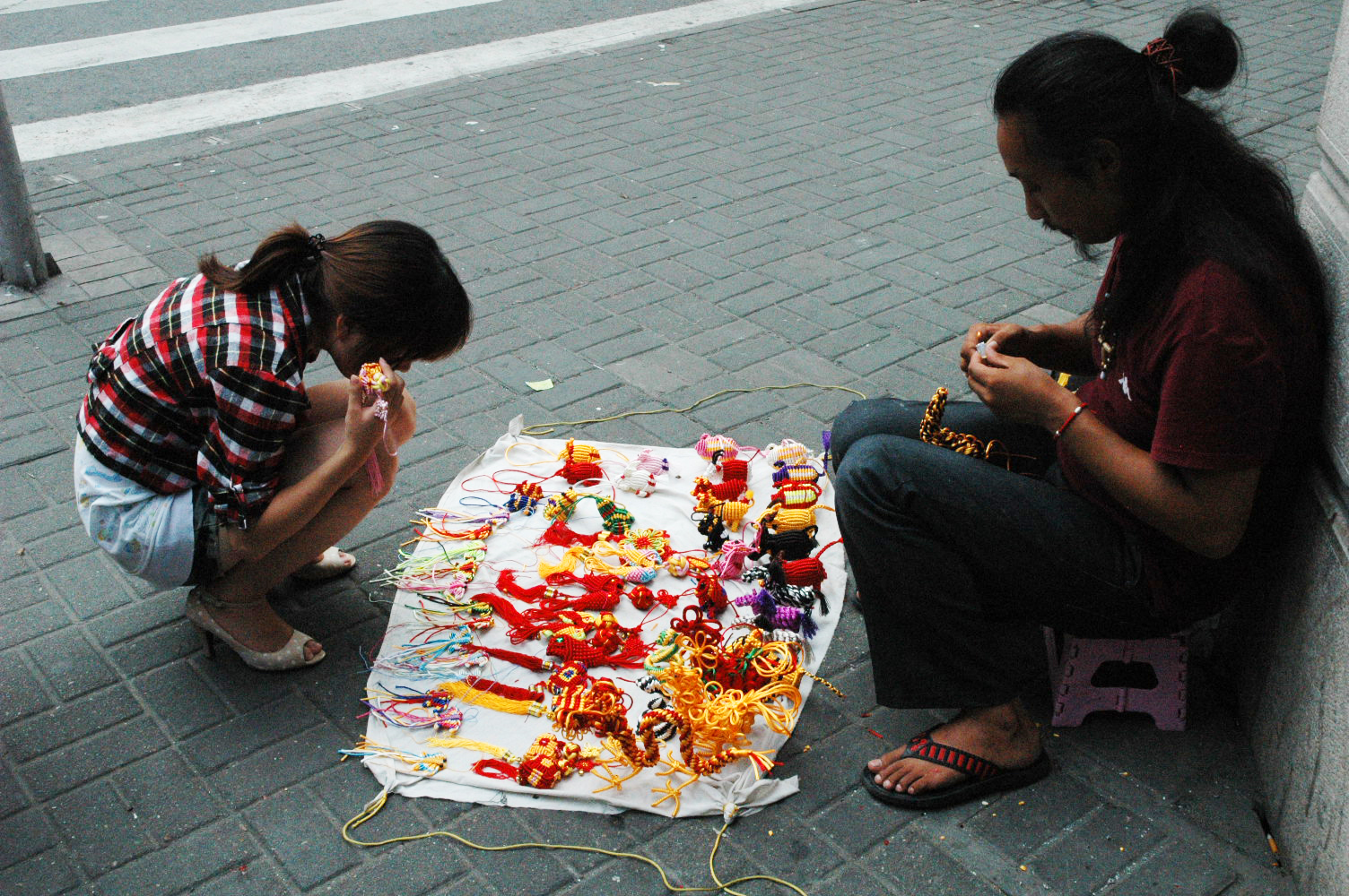 One of many street vendors selling handmade crafts.