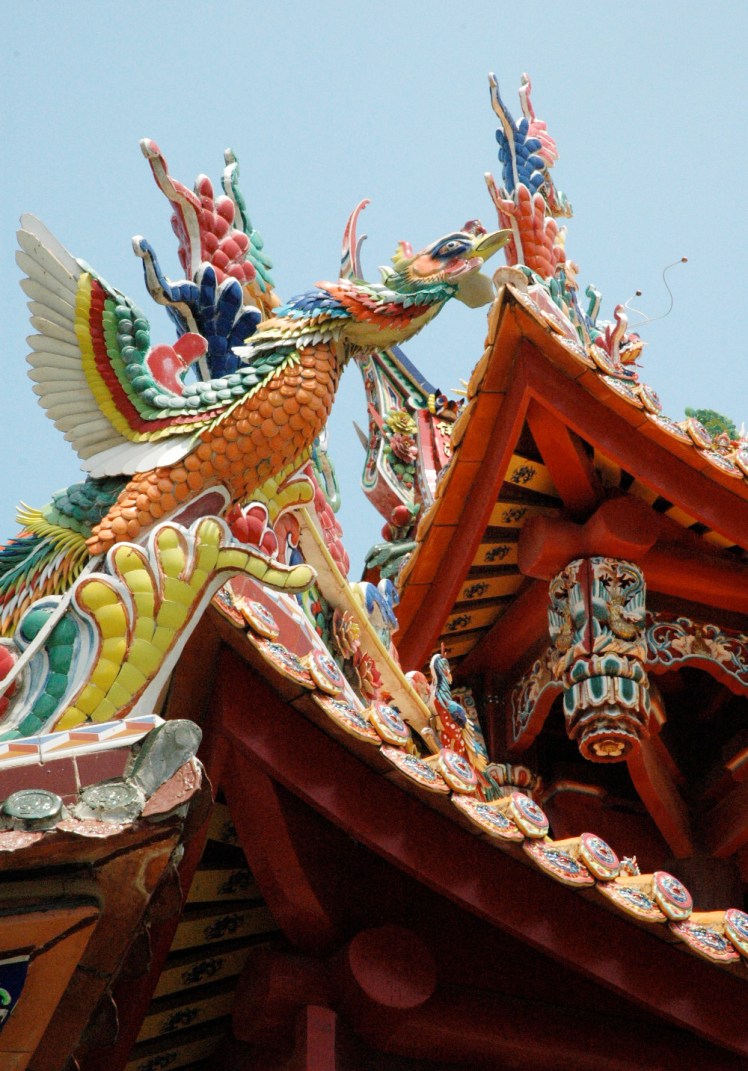 We take a cab to a nearby beach in the hopes of going for a swim. The sun is high and intense and there is no place to hide. We pass a beautiful temple with the most intricate and ornate decorations I have seen in China thus far.