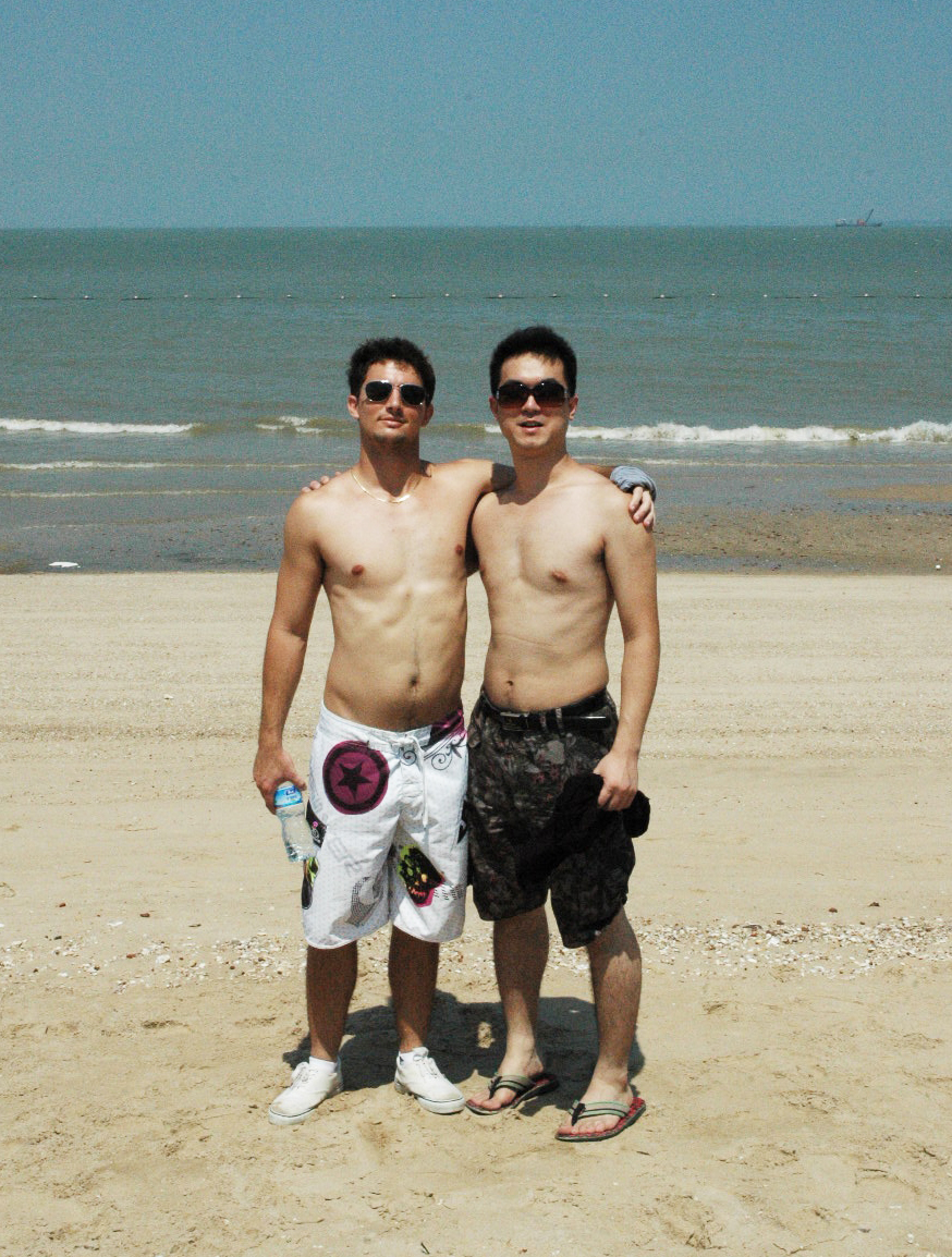 As quickly as we entered the park, we exit and head straight to the water. The water looks much cleaner than the beaches of Gulangyu Island. Overwhelmed by the heat, Peter and I peel off our clothes and rush into the ocean. The water engulfs me in a cool embrace and it feels incredible. While Kevin guards our belongings from the shore, Peter and I frolic in the surf. After getting nice and cool, we make our way back across the burning sand. With feet on fire, we rush through the blazing heat.