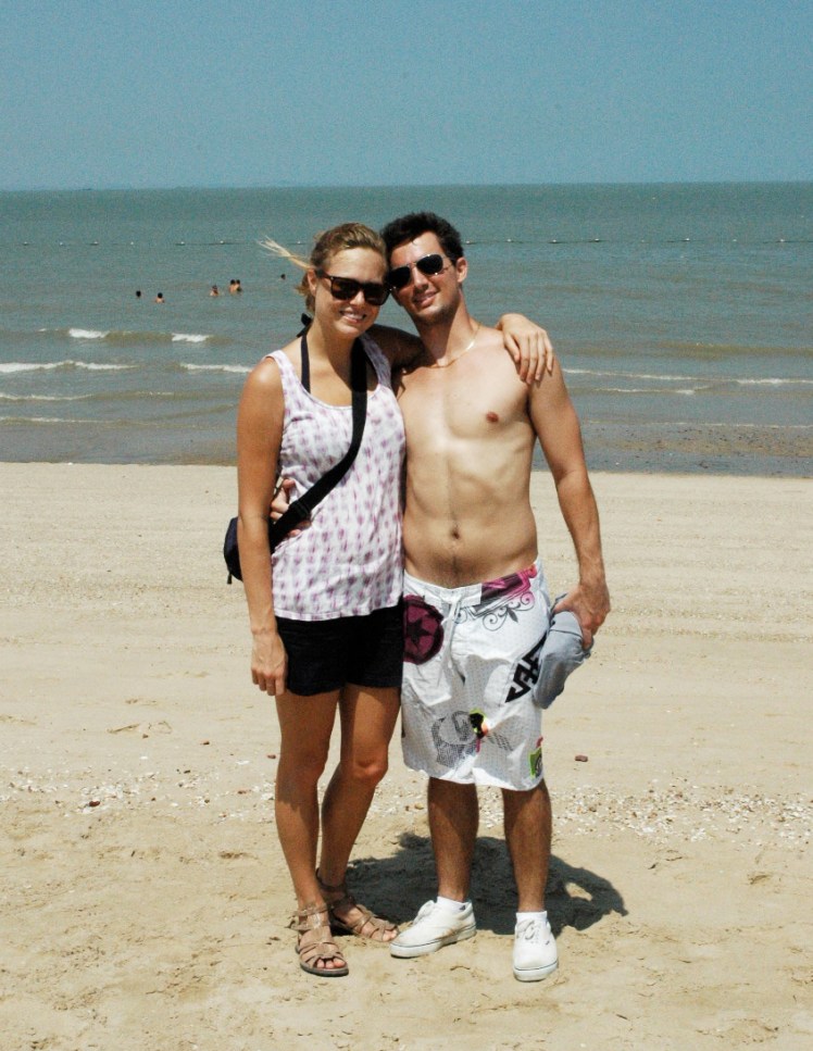 On our last day in Xiamen, Kevin promised to take us to the beach before our late flight. After meeting at a train station where Peter kindly buys cranky Kirsten some fruit, Kevin treats us to lunch at a place nearby. Let’s just say plates of delicious dumplings are consumed and I am happy. We then board a bus to Kevin’s parent’s home a little bit outside the main city. Kevin has told his parents that Peter is his classmate from school since they might feel uncomfortable with complete strangers. His parents, grandmother, and cousins welcome us inside their apartment and quickly dash around to bring us fruit, tea, and a fan. The day is hot hot hot and their apartment is very warm and I am grateful for their concern and hospitality. They are taken with Peter and his Chinese as I sit politely, smiling at the little cousins.