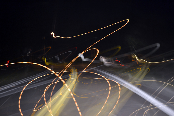 All over the place, slightly erratic, and illegal (you should not take pictures while driving).