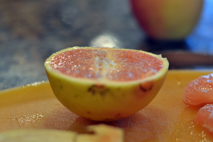 Grapefruit from the day. I ended up not even eating it. Maybe tomorrow. It is pre-sliced!