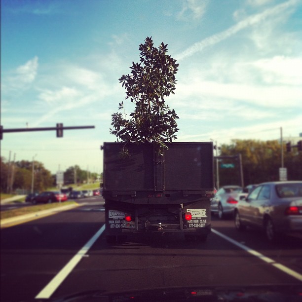 You probably have figured out that I don’t work in the most exciting town in the Tampa Bay area. However I do get to see funny sights on my hour-long commute like trees, pre-fab houses, and horses on trucks. Impressive really.