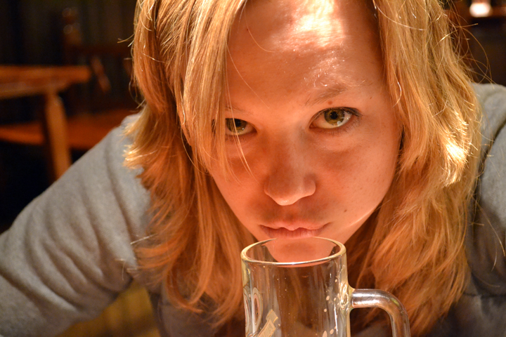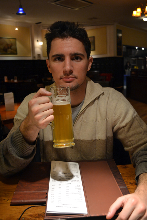 Making our way to a cab-lined street, I notice a big building nestled away from the sidewalk behind a fence and some serious shrubbery. Enticed by the brightly lit windows, I convince Peter to explore this building. As we near the building, I see a sign that says “Paulaner Brauhaus”. We opened the door and are greeted with a big, bustling, German restaurant and beer house!