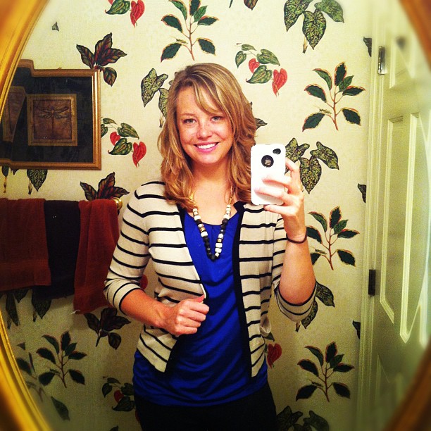 Today somebody complimented my outfit at the bank. So I took a picture. So I can remember what I wore and wear it again. My fashion direction is usually backwards. Or upside down.