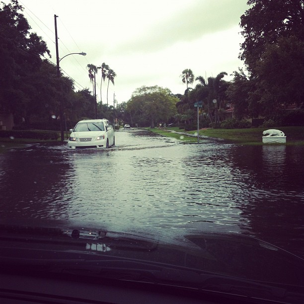 Now it was a torrential downpour. I tried coming at Coffee Pot from the opposite direction in an attempt to get over the Snell Isle Bridge but again met a submerged street. So I turned around to drive in the back way. I made it pretty far, plowing through flooded streets along with every other crazy person out on the road.