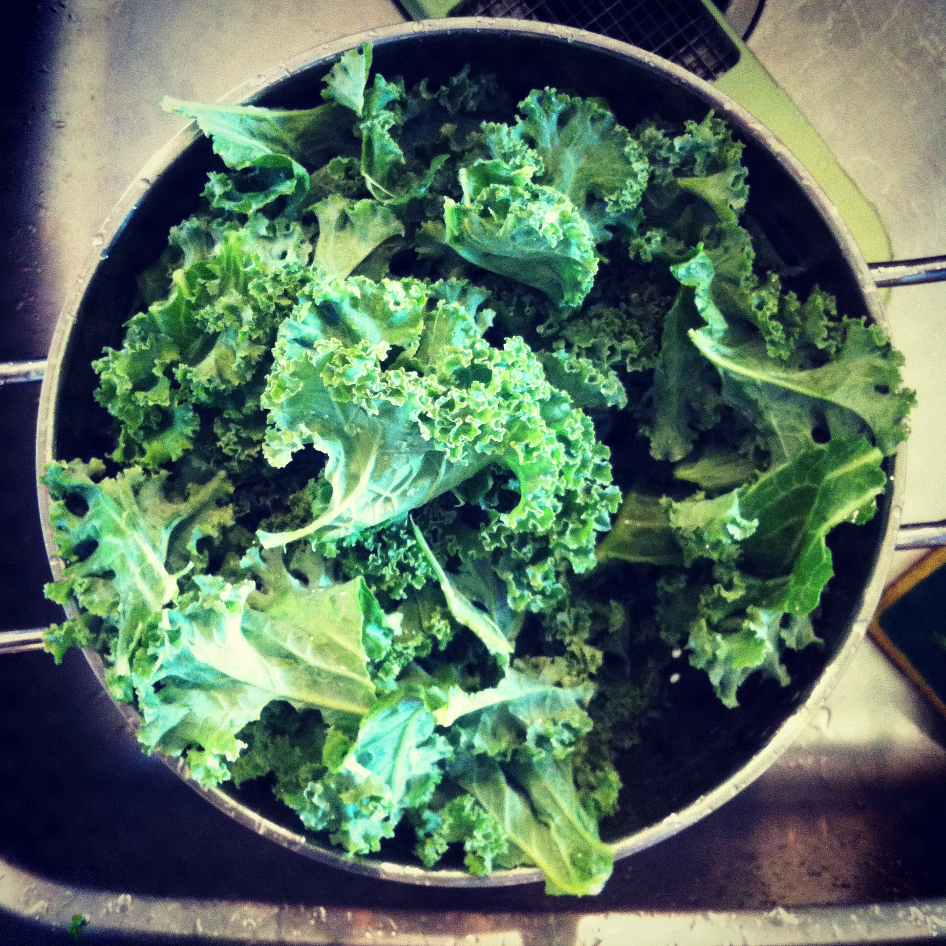 Olive oil. Salt. Pepper. Kale. Heat.