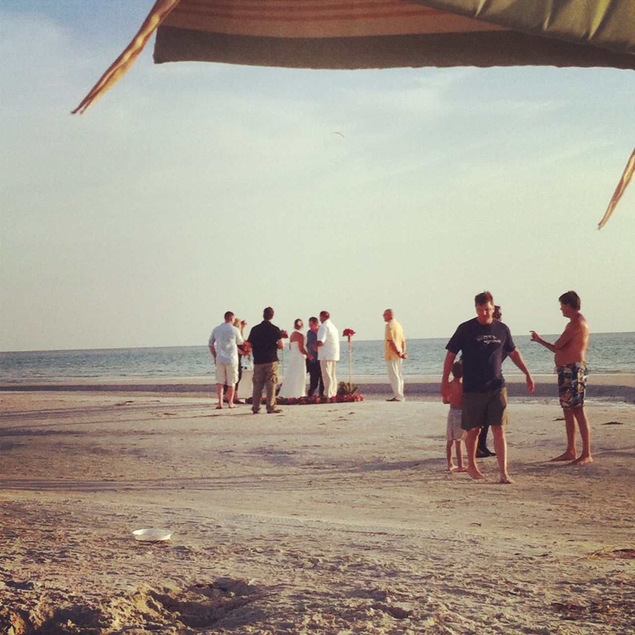 Down at the beach we see a lovely beach wedding taking place by our family tent.