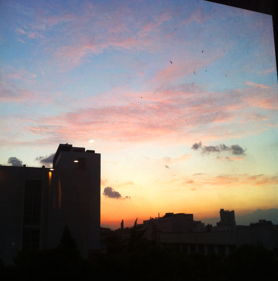 After badminton we lounged around the apartment before meeting another couple for dinner. Check out the sunset from our place!