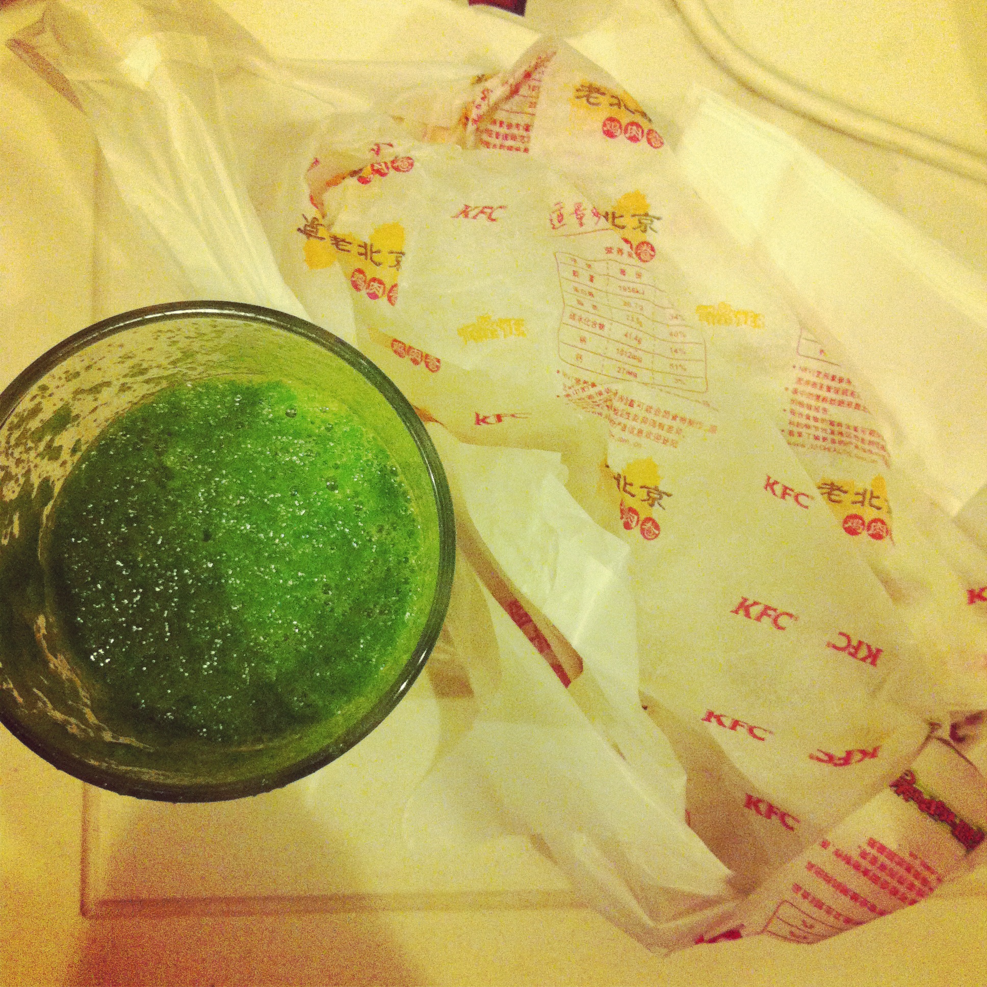Oh yeah, the green smoothie was… well green. And gave me a stomachache. Sometimes too much fiber is a bad thing. If only I could make these KFC wraps at home. But that would take a lot of skill and deep fryer. Can you deep fry in a wok?