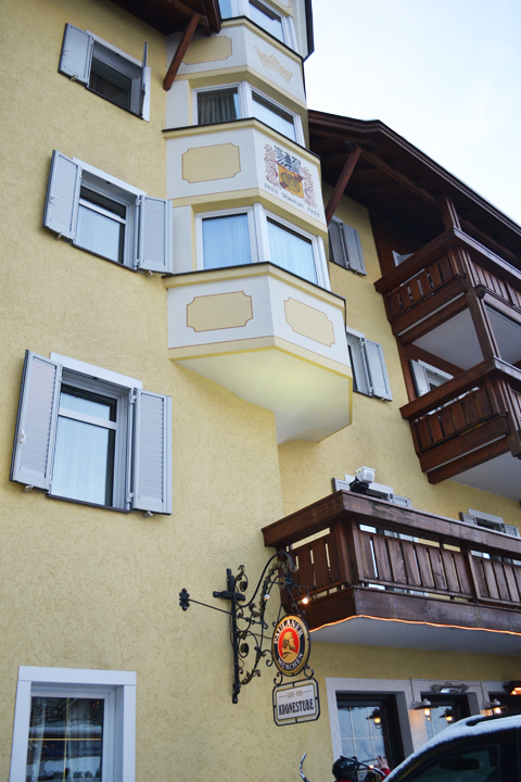 Selva and other villages in Val Gardena have a long history of woodcarving which was evident in the buildings and artwork around the village. Selva, the Ladin name of the town, derives from the Latin word “silva” which means wood! Walking down the street, we encountered many wooden crucifixes and manger scenes, a reminder that we were most definitely in a Catholic state. I also saw the sign for Paulaner beer which we drank in China!