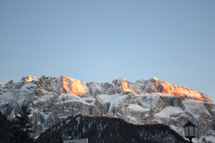 Our long walk concluded with a beautiful sunset by the pathway to our hotel. I tried keep my brain wrapped around the fact that I was indeed in Italy! It seemed like a dream come true. The air was freezing as the sun disappeared behind the mountain, engulfing the valley in shadows while illuminating distant peaks in golden light.