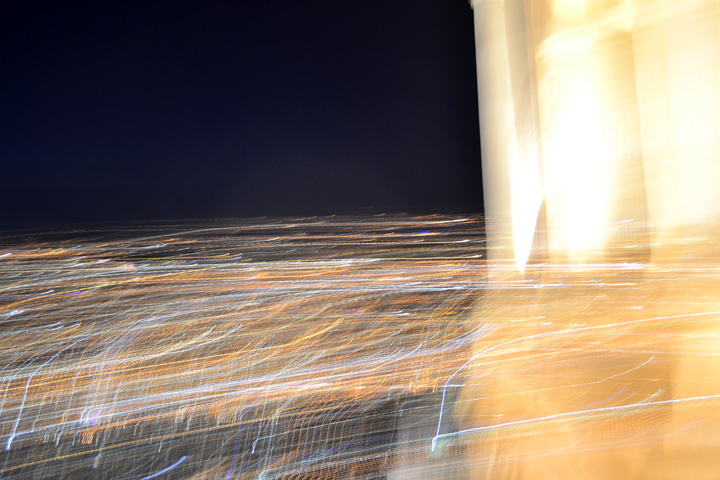 In addition to taking in the view (and shivering in the cold), I had some fun with long exposures on my camera. Have you ever done this before? Select a slow shutter speed and then move the camera around while the shutter is open. Viola!! You have a beautiful light show.
