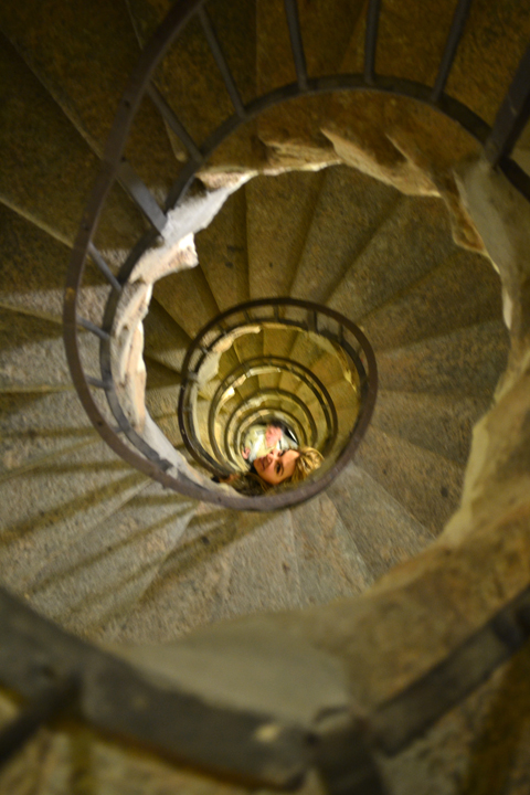 After our tour of the tombs, we walked up a steep spiral staircase to the roof. You know, one of those never-ending staircases that make you nauseous with the constant circular creep against the wall. I was relieved to reach the top quickly. By this time it was dark and the lights of the city were bright in the distance. All of Turin lay before us, sandwiched between the mountains and Po river.