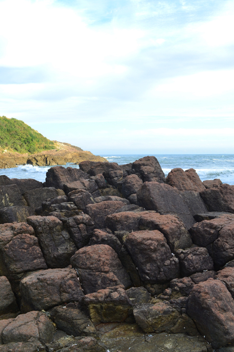 The rocks were shaped like big rounded squares, fitting into each other like large and irregular legos. I loved the symmetry and wondered how these rock formations were created. Were they shaped by land or by sea?