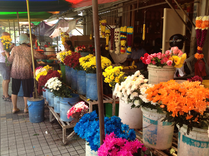 In the vicinity of the temple, we also found a flower market with bright bouquets and wreaths for decorating homes as well as shrines like the Hindu shrine above. At each flower stall, florists were hard at work cutting blooms and creating custom bouquets for customers.