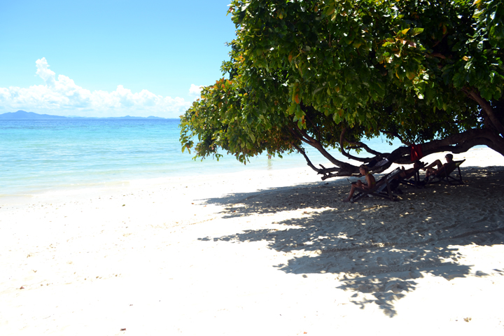 For the rest of the day we parked ourselves under a lush tree on the narrow beach directly next to the resort. The low and dense branches of the trees provided ample shade and protection from the hot sun. We alternated between snorkeling in the warm waters and napping in low slung beach chairs next to fellow guests from around the world.