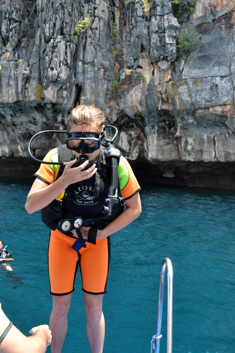 An hour later, it was time to come back up. As we broke the surface, I was relieved and sad at the same time. Although I was happy to breathe normally again, I was sad that our diving experience was over. Before this trip to the Phi Phi Islands I would have NEVER considered scuba diving. My fear of the ocean, drowning and small spaces convinced me that scuba diving was just not for me.
