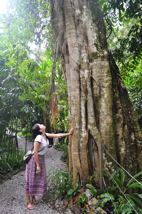 As soon as we walked through the entrance, we found ourselves in a lush tropical environment that quieted under the heavy humid air. We paid to join a guided-tour and were given a bottle of cintronella oil to spread over our arms and legs as a natural bug repellant.