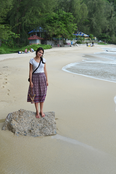 After almost 5 hours at the Tropical Spice Garden, we literally had nothing else to see or do. So we finished off our day trip to Batu Ferrighi at the beach across from the Spice Garden. Carina finally experienced the pebbly sand that is so different from the sand on Florida beaches. The beaches in Penang are much smaller and rougher and are full of big boulders just begging to be climbed. I have never swam in the ocean around Penang and honestly have no desire to go in those murky waters. The ocean here is meant to be admired from afar.