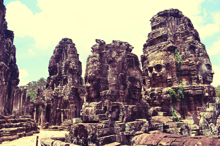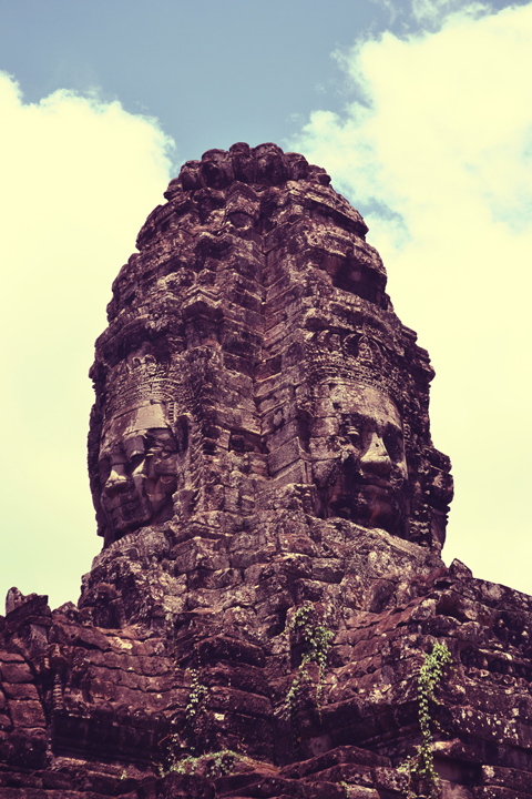 On the upper terrace of the temple, accessible only by scary steep steps, we found ourselves standing at the base of many small stone mountains emblazoned with almost 200 grinning faces of Lokesvara. Lokesvara, meaning “Lord who looks down”, is a bodhisattva who embodies the compassion of all the Buddhas. Walking along the terrace, I could feel the eyes of the calm yet mischievous looking faces follow me wherever I turned. It was a bizarre yet comforting experience, one that brings to mind the feeling I get as an American expat in Asia. Eyes are on me wherever I go. It is disconcerting and yet familiar all at once.