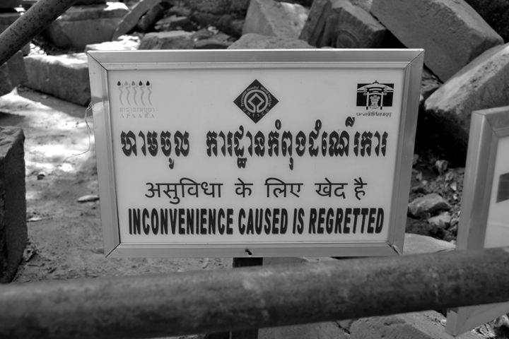 However some of the walls had fallen, creating an eerie atmosphere of collapse and dilapidation. I believe this was the goal of the conservationists, to keep the temple the same way they had found it. The result is pretty awesome… except when inconvenience is caused. It is regretted! Oh how I love non-sensical English translations (like Chinglish).