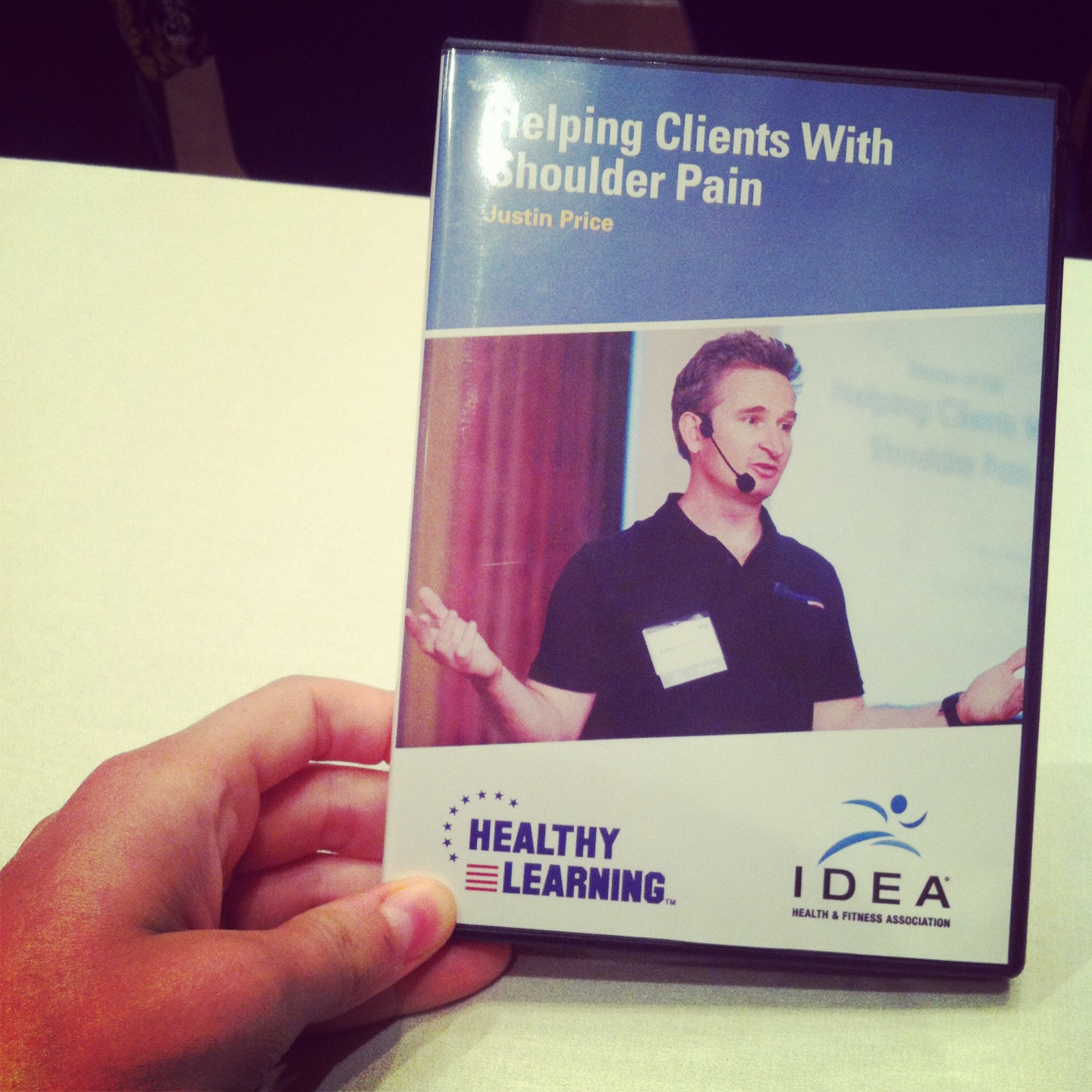 Funny story, in class I found myself sitting next to another Kirsten! At the end of class, Justin did a raffle for one of his IDEA Conference videos and he announced “Kirsten Chmaseirjaosdjfl….”, butchering the last name. The other Kirsten jumped out of her seat and yelled “That’s me!” Then he said ok “Kirsten Chmielewski” and I stood up and said “Uh, actually that’s me.” Whoops…. but I won!!! Hooray! Can’t wait to watch this video on addressing shoulder pain.