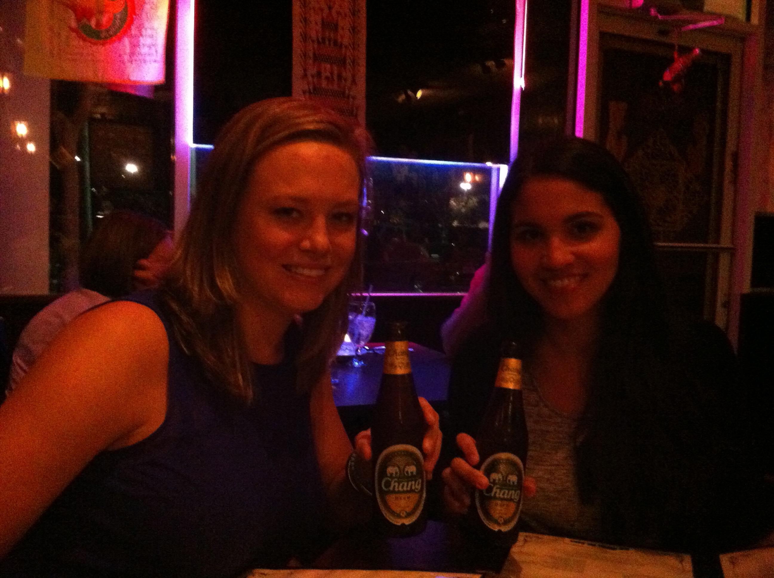 I don’t know how, but that night Carina and I went to downtown Orlando for some Thai food, Chang beer and drinks at The Woods. Have you tried Chang beer? It is a delicious Thai beer that we tried in Chiang Mai. We were so excited to see it on the menu! Also, if you have the chance go to The Woods in Orlando. It was a really chill craft bar with a brilliant forest decor featuring lots of wood and antique knickknacks. They also have some delicious cocktails made with their own cinnamon infused whiskey. Oh yes. It was a long night…