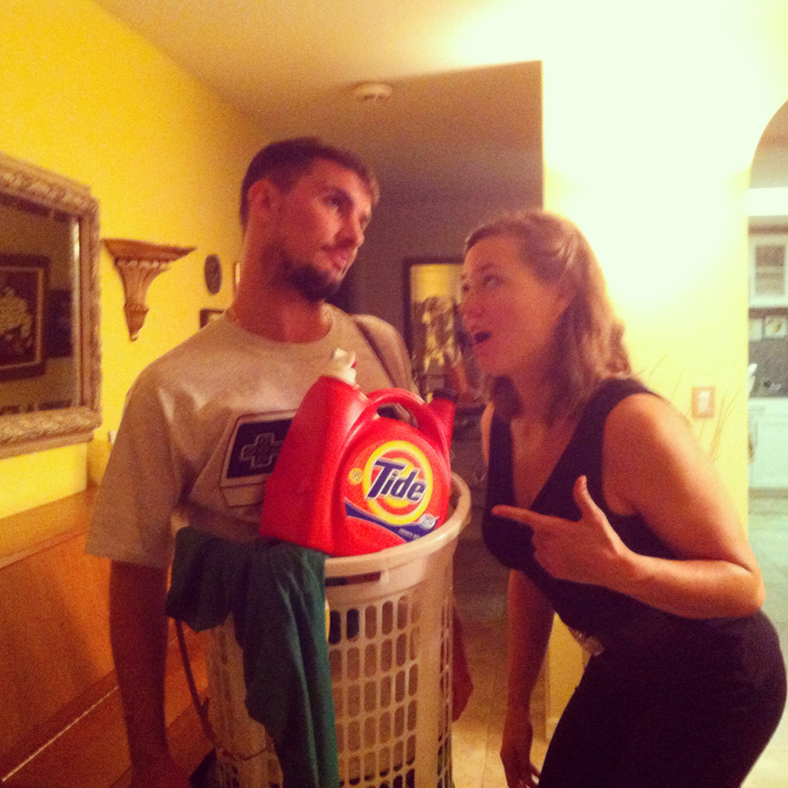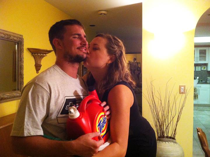 He was a laundry hamper! We cut the bottom off a plastic hamper and strapped it over his shoulders with some belts. To complete the look, he wore pajamas and stuffed a dirty shirt and bottle of detergent down the front. It was hilarious. As we walked down the street literally every single person smiled at his costume and shouted “that’s so creative!” or “yeah man!” People loved it.