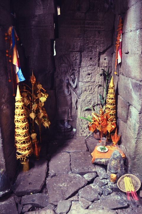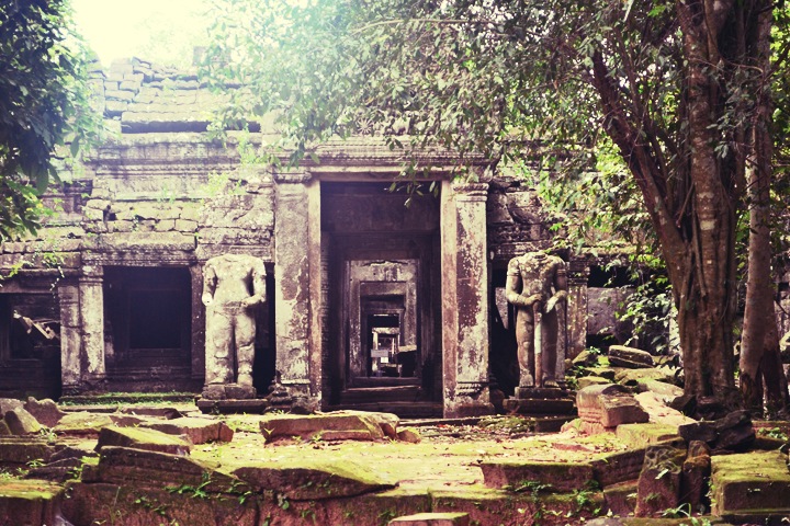 One of the temples we explored was Preah Khan. The enormous trees sprouting from its walls captured my attention and ignited my imagination. We could even see the religious transformation of the Khmer empire through the many bas-reliefs in the Hall of Dancers. All of the carvings of Buddha had been partially destroyed and carved again to look like dancing Apsaras, Hindu spirits. That’s one way to recycle!