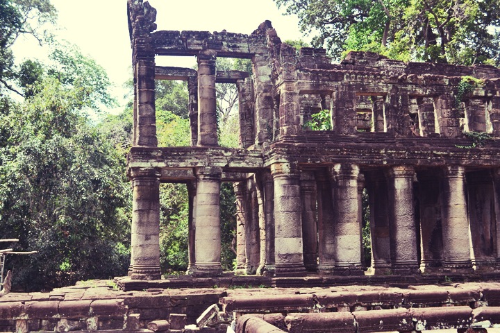Preah Khan also has the only two-storied structure in any temple in Siem Reap. The rounded columns most closely resemble Roman architecture which might have been an influence.