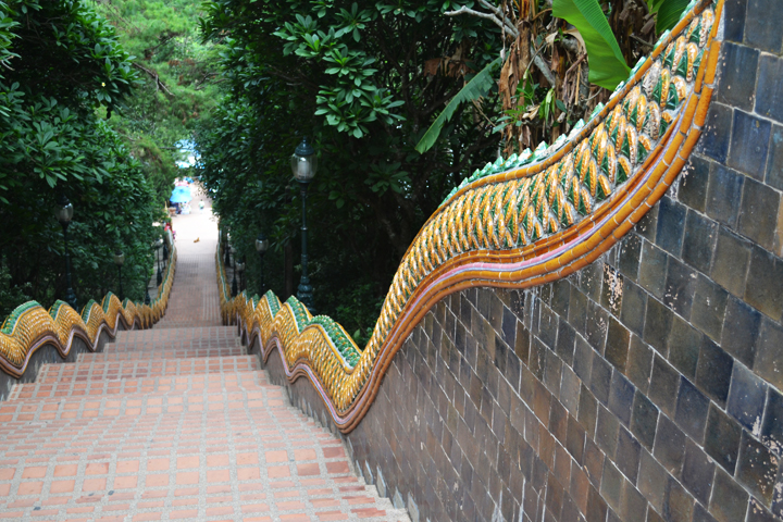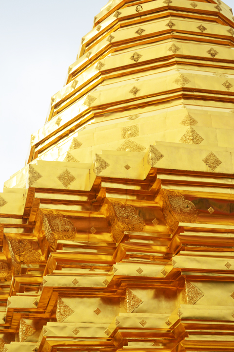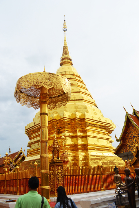 Although we loved Old Town and could hang out there forever, we decided to see more than the inside of every juice bar in Chiang Mai. So we hired a car and driver to take us up into the mountains to see the famous Wat Phra That Doi Suthep, the Royal Gardens, and a hill tribe village. We met our driver early in the morning and began the steady climb up Doi Suthep mountain. After, we pulled off the road and arrived at a stunning vista overlooking the city. The air was blessedly cool and the view was spectacular. It felt good to be away from the bustling city and we were happy to be there.