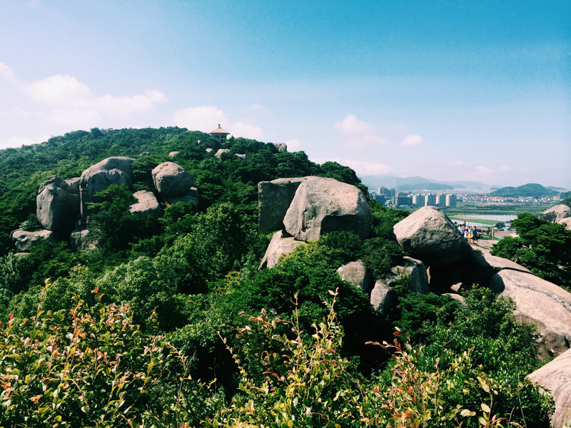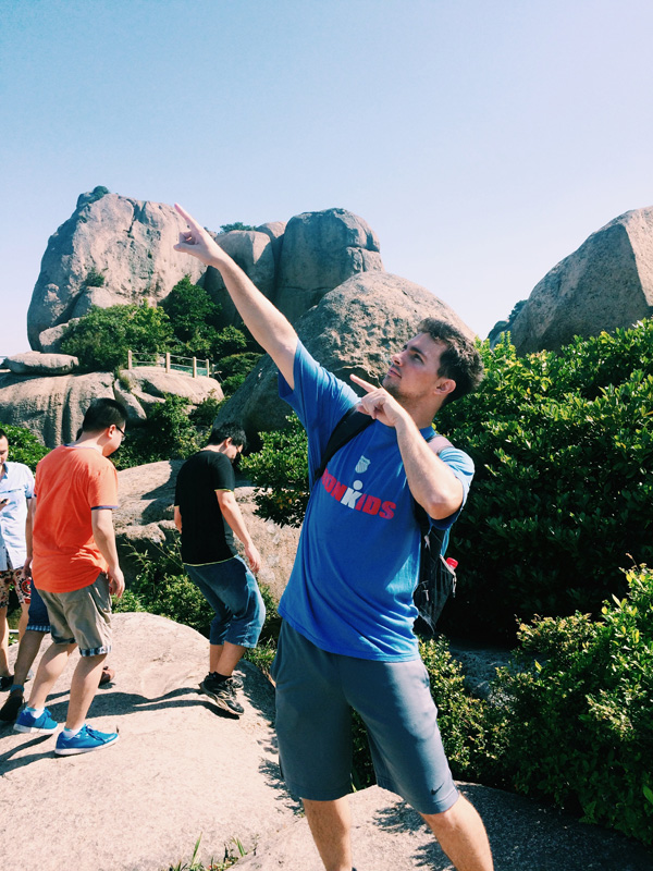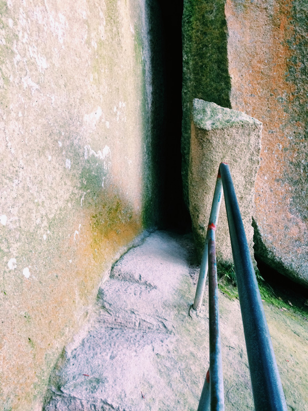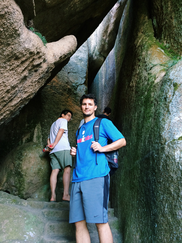 We slept hard in our ice cold room and were up by 7:30am for an early breakfast of rice porridge, rolls, eggs and other random items at the same restaurant as the night before. By 8:30am we were hiking up stone steps behind a jabbering tour-guide up some mountain. I honestly have no idea what this mountain is called or why it is important. All I know is that it had a lot of small rock crevices we had to crawl through and some great views from the top. It was terribly hot and humid, even in the early morning, but we enjoyed the scenery anyways.