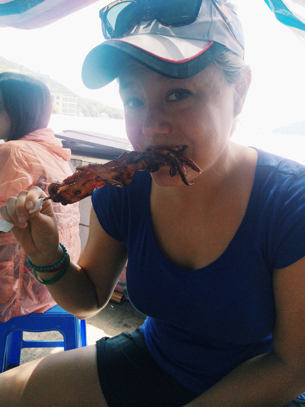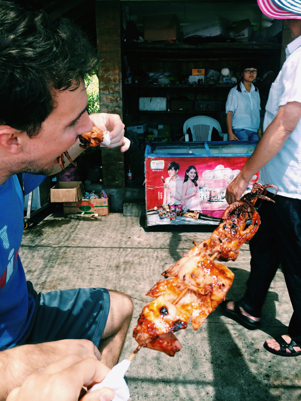With time to kill, we found the place where people were selling everything from ice cream to grilled seafood, fresh from the sea. I devoured an ice cream and hesitantly accepted a grilled squid from our friend Wade. I usually hate squid but OMG THIS WAS DELICIOUS. The squid was grilled in some spicy and savory sauce and cooked to perfection. Add that to my list of weird things consumed in China (horse ankle from Xiamen still ranks at #1).