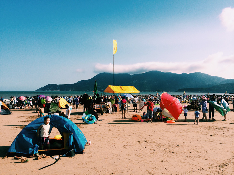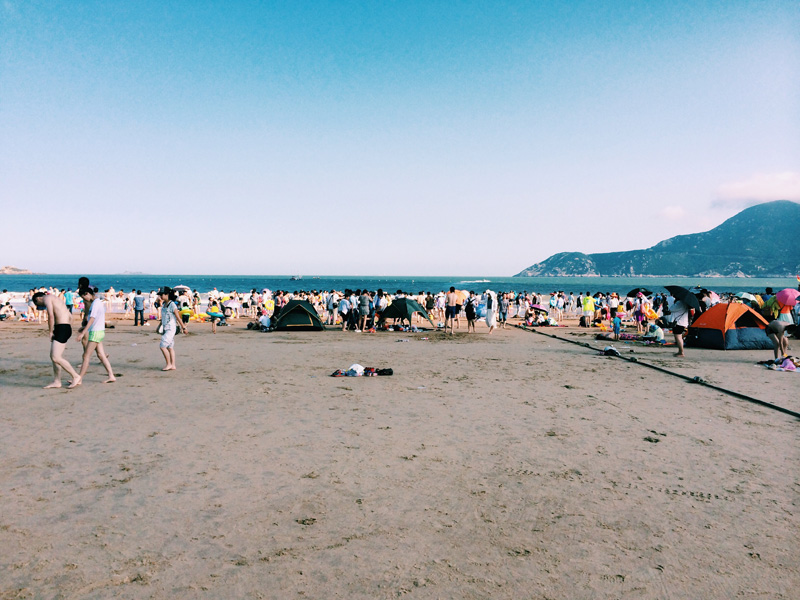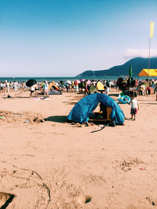 We had 2 hours of relaxation at the hotel (thank god), before we left for yet ANOTHER beach, this time in an area right next to our hotel. However, these beaches are not just open access to the public. You must pay a ticket and walk down an absurdly long entrance walkway through various stalls and buildings before actually arriving at the beach. This makes sense in China because it filters the massive amount of people visiting and spreads them out to reduce a cluster-you-know-what.