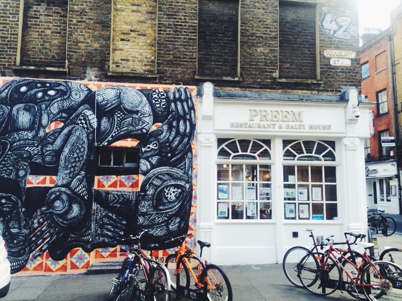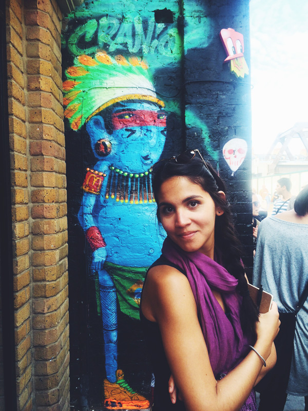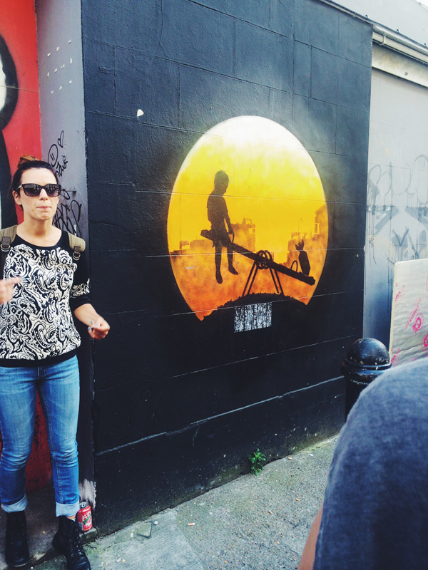 Although I wanted nothing more than to go back to the flat and wallow in self-pity, we had already signed up for an Alternative London Walking Tour. This tour of street art in Shoreditch had come highly recommended from Tasha so we had to go. At 3pm we met our guide beneath the goat statue and away we went like hipster detectives on the hunt for street art gold.